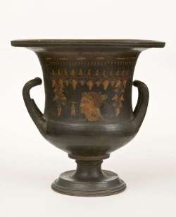Cratere a calice con testa femminile a vernice nera sovraddipinta