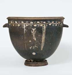 Askos con palla di lana e coppa a vernice nera sovraddipinta