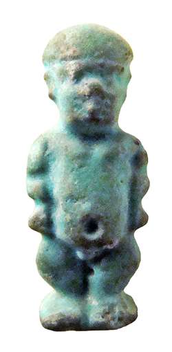 Amuleto raffigurante Pateco con anello dietro il collo, dall'Egitto