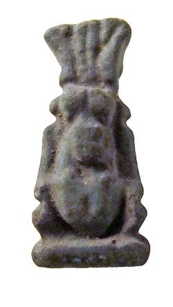 Amuleto in faience raffigurante Bes con foro passante nelle piume, dall'Egitto