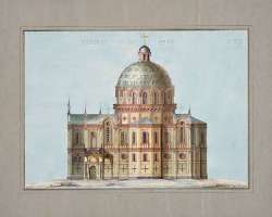 Progetto di chiesa in stile neoclassico con campaniletto posteriore