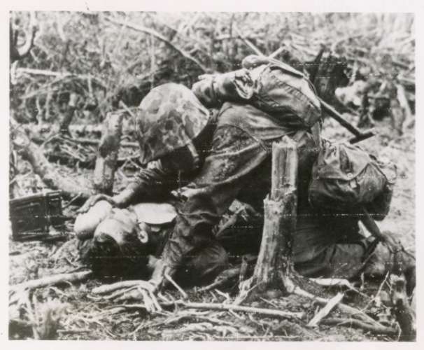 American medics treat innocent victims of japanese snippers