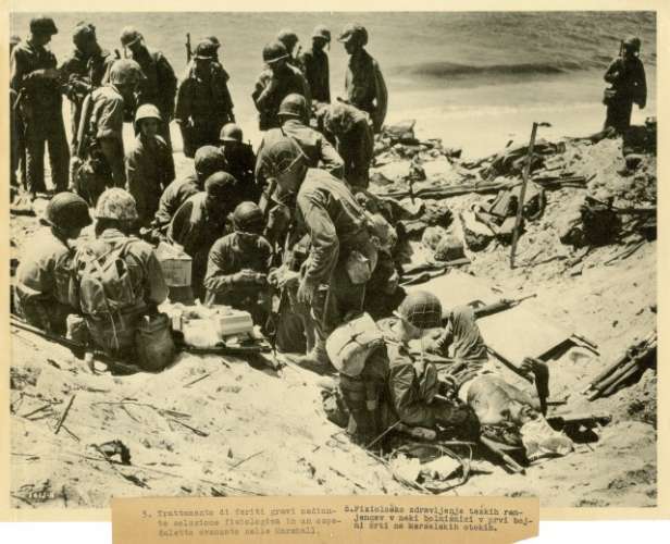 U.S. Marines on beach at Okinawa