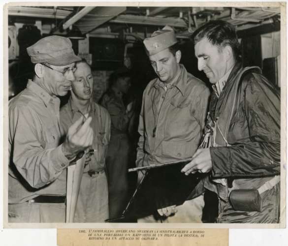 Admiral Sherman receives fighter pilot report