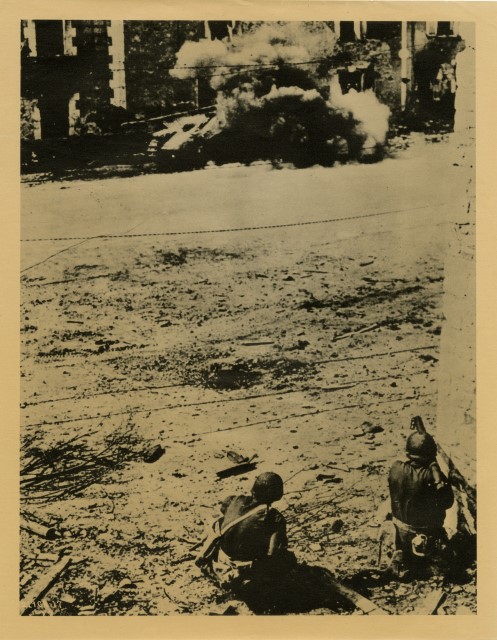 Fanteria alleata sotto il fuoco nemico nei pressi di Periers