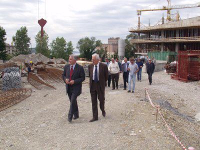 L'assessore comunale Giorgio Rossi visita il cantiere del Polo natatorio : Sopralluogo : Trieste : 2002