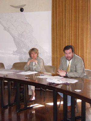 Renzo Codarin vicesindaco incontra Evgeny Pavlovic Velikhov e Dmitry Rundqvist accademici russi : Trieste : 2002