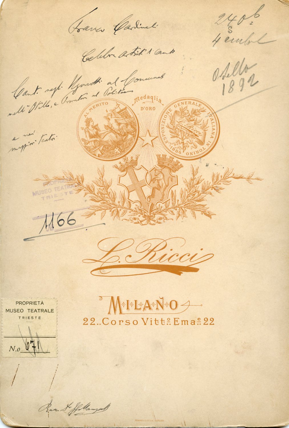 Al Teatro Comunale di Trieste canta nel 1887 in "Gli ugonotti"; al Politeama Rossetti di Trieste nel 1880 canta in "Norma" nel 1893 in "Otello" e "Il trovatore".