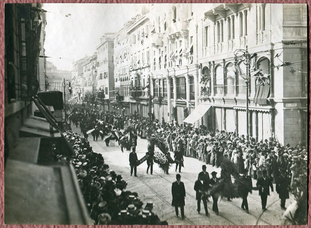 Felice Venezian, avvocato, esponente di rilievo della massoneria, svolge il ruolo di capo carismatico indiscusso del movimento liberalnazionale per un ventennio, riuscendo a tenere unite le diverse anime della comunita' italiana sotto una guida conservatrice ed intransigente, capace pero' di tenere a freno gli esponenti piu' radicali. La sua prematura scomparsa lascia un pesante vuoto nel movimento. (Cfr. Trieste: una storia per immagini 1900-1918, p. 48)