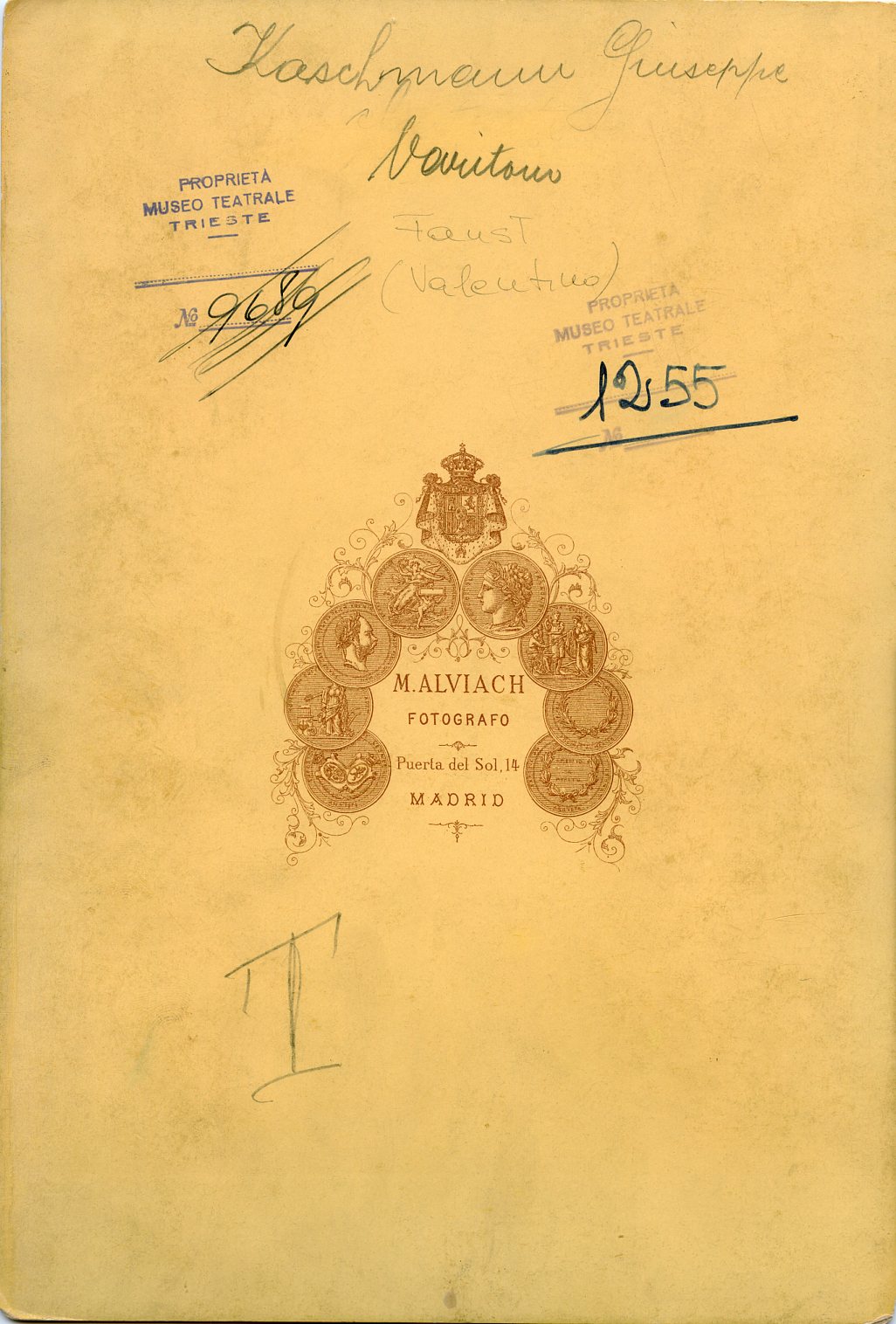 In costume, forse nel ruolo di Riccardo ne "I puritani" interpretato a Madrid nel 1880. A Trieste si è esibito al Teatro Comunale nel 1877 in "Gli Ugonotti", nel 1908, nel ruolo del titolo, "Il Battista", e nel 1912 in "Don Pasquale" e "L'elisir d'amore"; nel 1910 al Politeama Rossetti nel ruolo di Scarpia nella "Tosca"