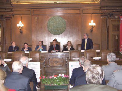 Gli assessori Renzo Codarin, Roberto Menia alla sua destra, Federica Seganti assessore regionale ed il presidente del Consiglio Comunale Bruno Sulli
