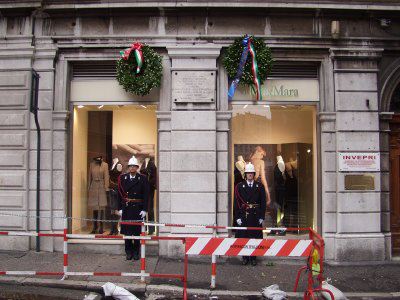 L'assessore Fulvio Sluga ed il consigliere Silvano Magnelli commemorano con corone d'alloro le targhe ai Caduti del '53, ai Caduti del 5 maggio '53, la targa Beltramini '45, le targhe ai Caduti antinazisti del '44 ed ai 41 martiri antifascisti del '44