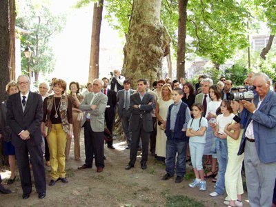 Alla scopertura del busto nel giardino pubblico De Tommasini hanno presenziato gli assessori Roberto Menia e Giorgio Rossi, Irene Camber, figlia del poeta, accompagnata dal figlio Piero consigliere comunale dalle figlie e dai nipoti