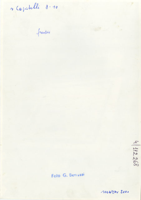 Frantoio per olive rinvenuto in via dei Capitelli, al civico 8-10, risalente al V sec. d.C. Il frantoio venne realizzato riutilizzando un blocco parallelepipedo decorato appartenuto a un monumento funerario di I secolo d.C. È attualmente visibile all'interno dell'edificio posto al civico 8 di via dei Capitelli.