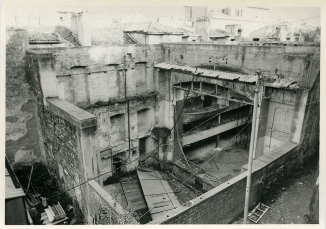 I resti del Teatro Filodrammatico distrutto alla fine degli anni Ottanta da un rovinoso incendio. L'edificio, costruito a seguito di un incendio che aveva devastato alcune catapecchie ai piedi del Colle di San Giusto, liberando così l'area, venne inaugurato nel 1829.Fu tra i più importanti teatri della Trieste asburgica, prima di venire convertito a cinema tra gli anni Venti e Trenta.