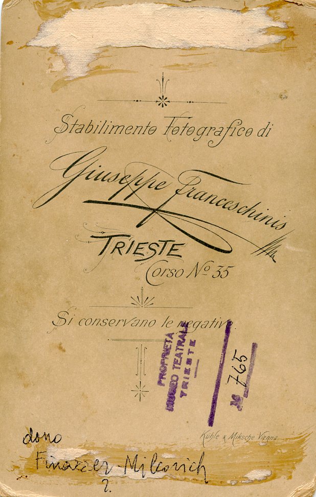 Proprietà Ente pubblico territoriale; Civico museo teatrale C. Schmidl; donazione; Finazzer Milcovich; 1927