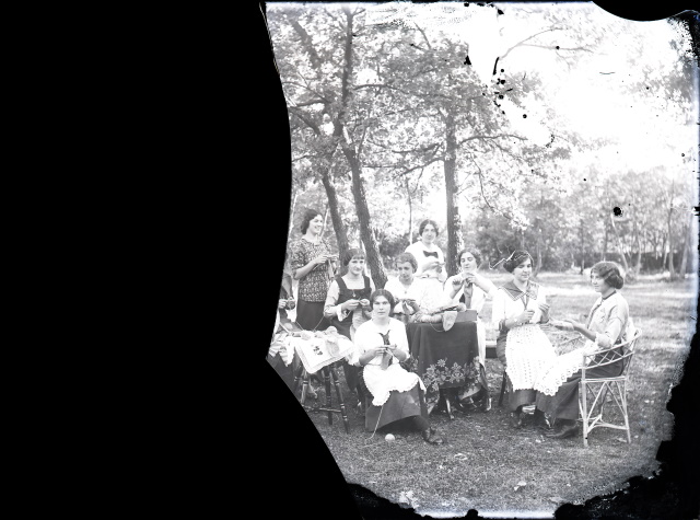 Gruppo di giovani donne che lavorano a maglia ad Aurisina durante la prima guerra mondiale.