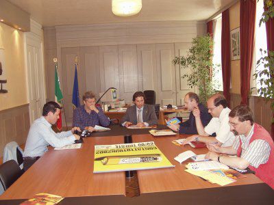 Maurizio Bucci, Alex Bini direttore artistico dell'iniziativa e Fabio Sparago organizzatore per Trieste entrambi di Radio Company nella sala riunioni dell'assessorato a Palazzo Carciotti