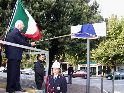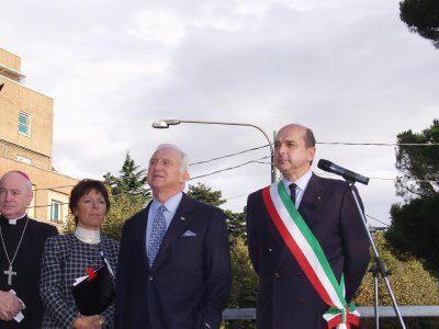 Il sindaco di Trieste Roberto Dipiazza con l'ambasciatore statunitense Melvin Sembler. presenti anche gli assessori Renzo Codarin e Fulvio Sluga, il vescovo eugenio Ravignani, i consiglieri comunali Paolo Di Tora, Michele Lobianco e Paolo Rovis
