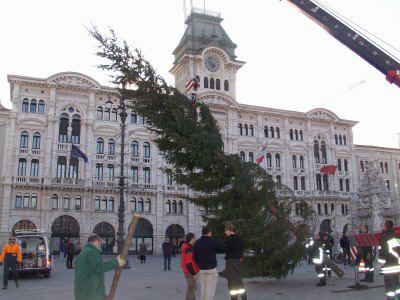 Posa dell'albero di Natale in piazza dell'Unita' d'Italia : Trieste : 2002