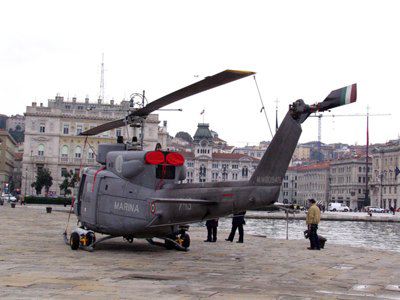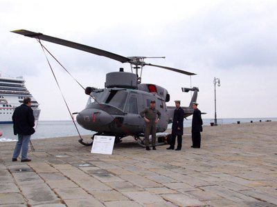 Il sindaco Roberto Dipiazza con l'Assessore Fulvio Sluga sul Molo Audace durante l'atterraggio dell'elicottero della Marina Militare.