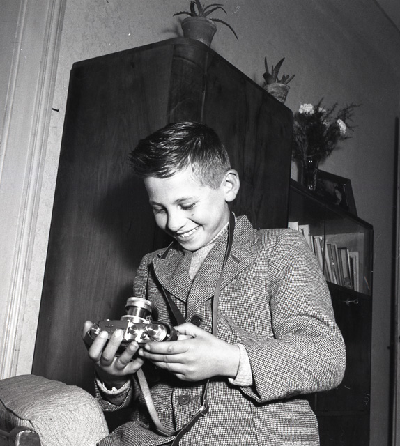 Fanciullo che telefona, fotografa, scrive a macchina e ascolta la radio