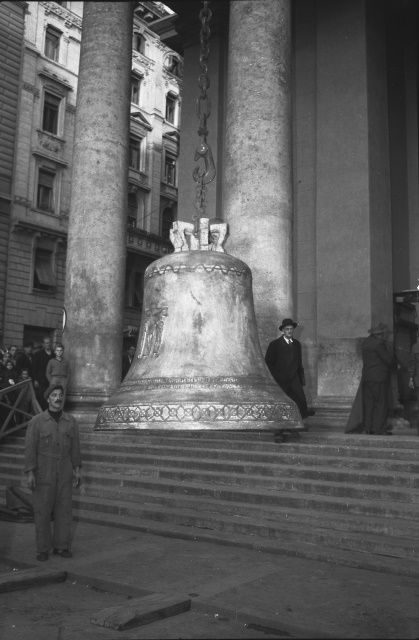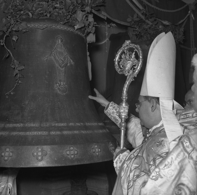 Quarantasette nuove campane, in sostituzione di quelle requisite o distrutte durante la guerra, vengono benedette dal vescovo Santin davanti alla Chiesa di Sant'Antonio Taumaturgo