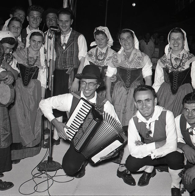 Spettacolo di un gruppo folkloristico, con sosta davanti al chiosco della Stock e foto di gruppo davanti allo stand delle Cantine Barone Leo Economo