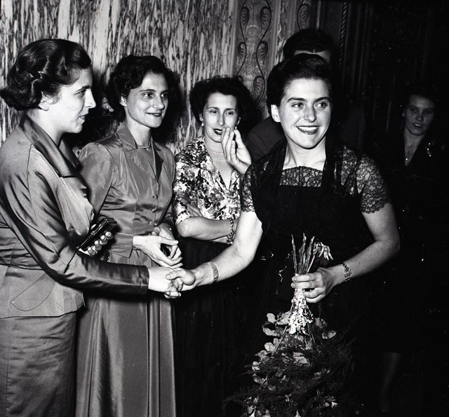 Ricevimento in onore della triestina Irene Camber, medaglia d'oro nel fioretto femminile alle 15. Olimpiadi di Helsinki.