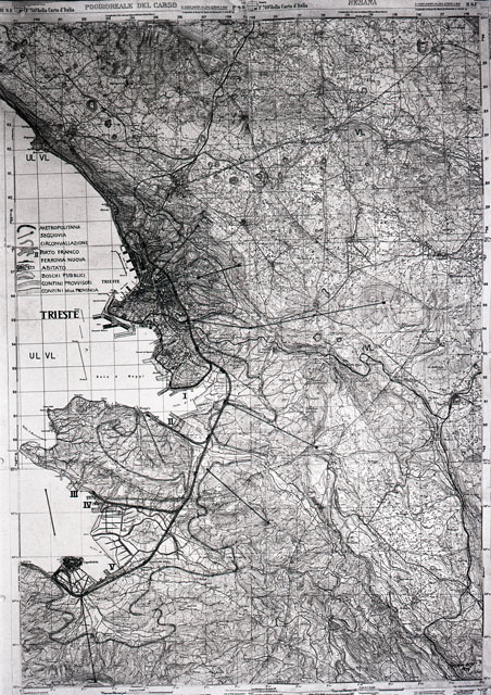 Fotografie di due carte geografiche del territorio di Trieste, tratte dal Touring Club Italiano
