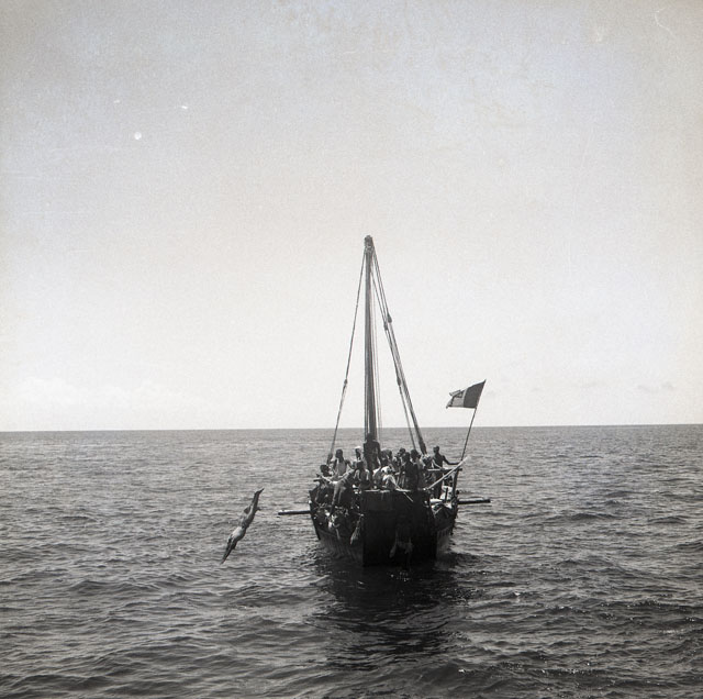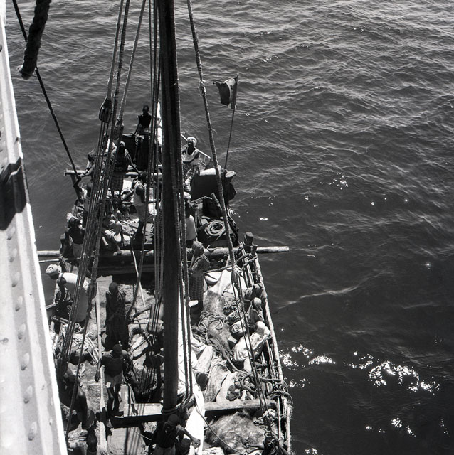 Immagini di una barca somala con a bordo passeggeri ripresa dalla Motonave Africa.
