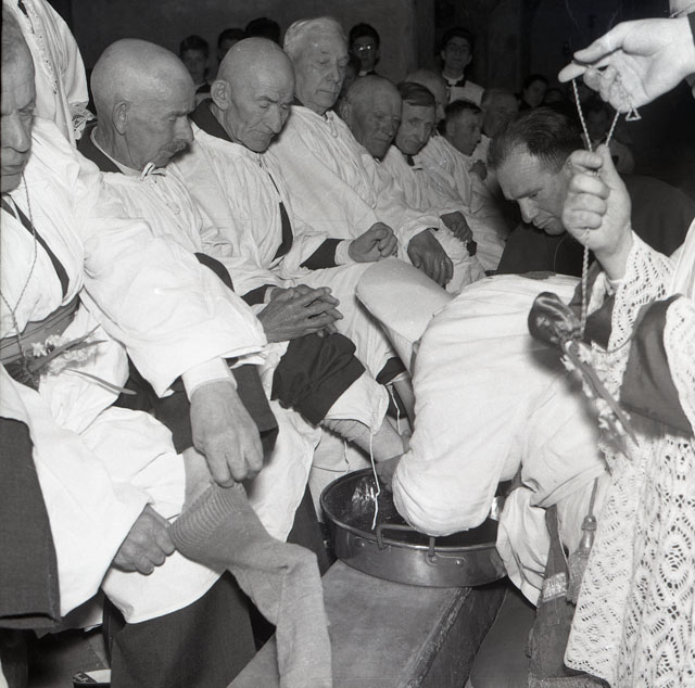 Le foto descrivono il rito della lavanda dei piedi