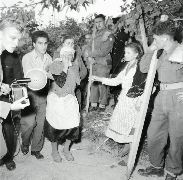 La foto UBNP001004_018 è stata pubblicata su Le ultime notizie di venerdì 15 ottobre 1954: riproduce Nina Dobrigna in lacrime nel vedere la propria casa di Cerei tagliata in due dal nuovo confine.