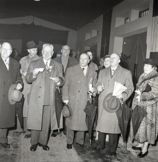 L'onorevole Achille Marazza e il sindaco Gianni Bartoli partecipano alla cerimonia di premiazione dei pensionati della Fabbrica Dreher