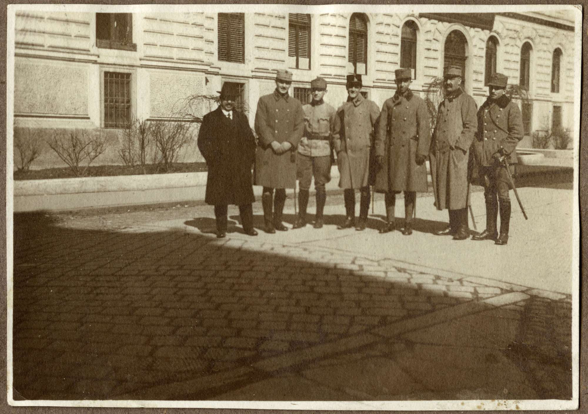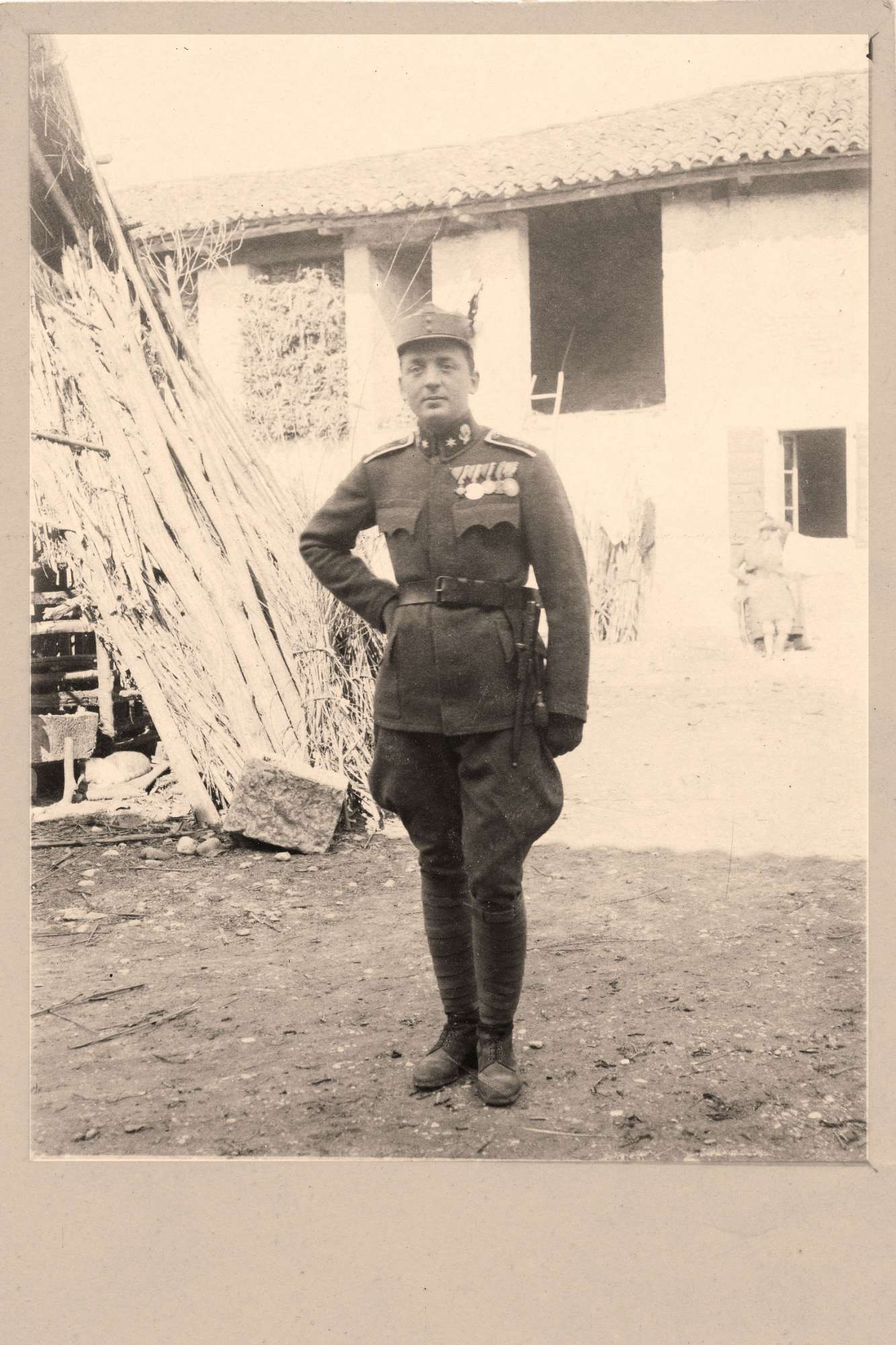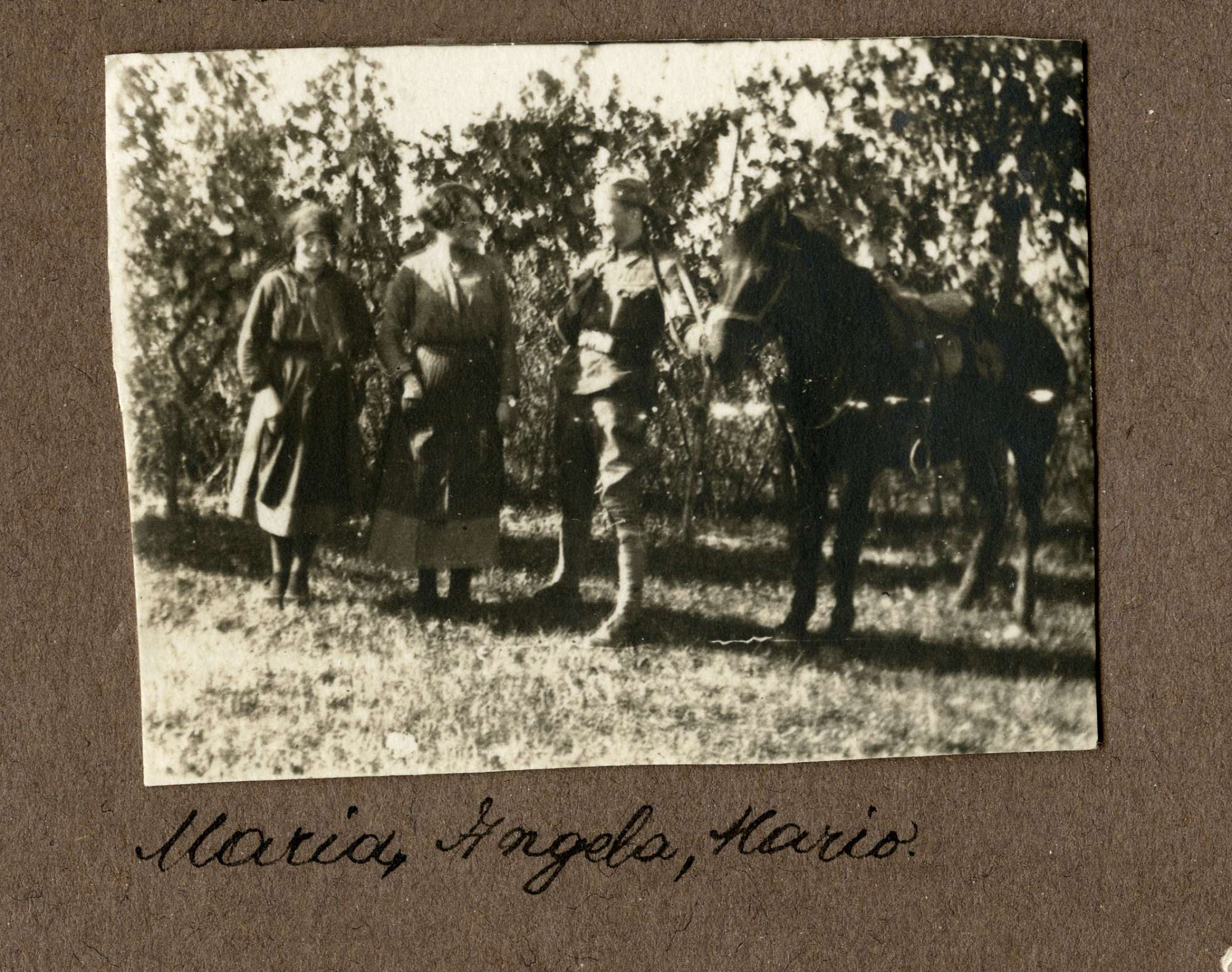 Le foto descrivono Mario Slavich in diverse occasioni. In divisa a cavallo, tra due commilitoni senza uniforme, con due soldati. A Rivignano con Angela. Mario, il primo a sinistra, un civile ed un gruppo di soldati davanti ad una caserma. Mario tra due soldati. Maria, Angela e Mario soldato con il bracciale della Croce Rossa. Ancora Mario mentre esegue una medicazione.Mario a figura intera