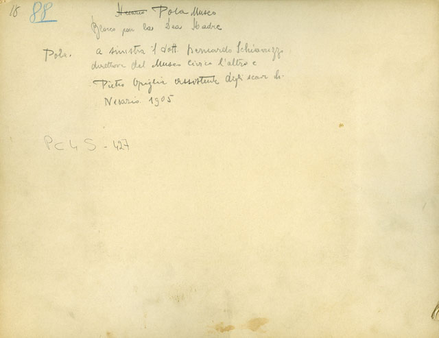Pola, museo : blocco per la Dea Madre : Bernardo Schiavuzzi direttore del museo civico e Pietro Opiglia assistente degli scavi di Nesazio