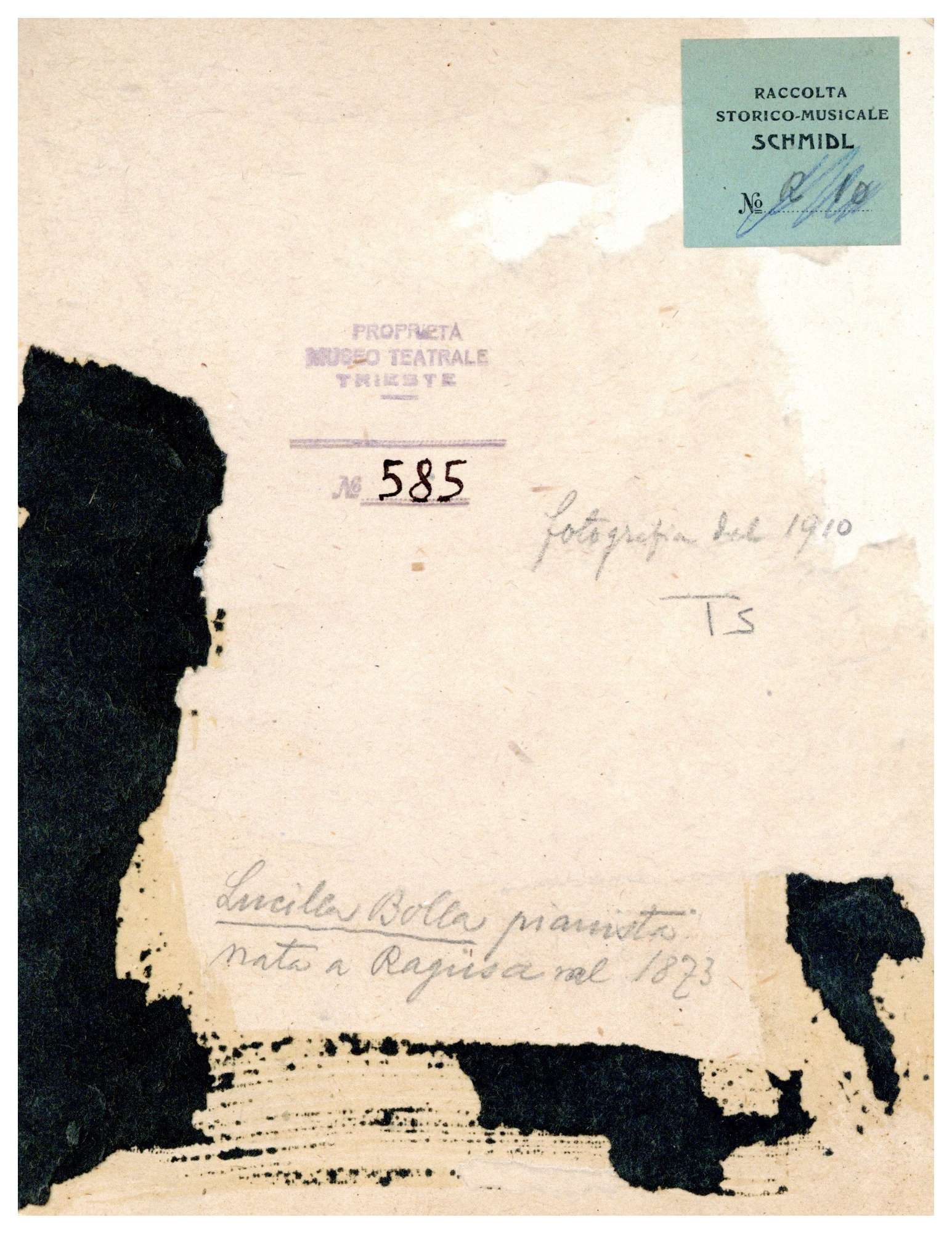 Proprietà Ente pubblico territoriale; Civico museo teatrale C. Schmidl; donazione; Bolla, Lucilla ; 1918