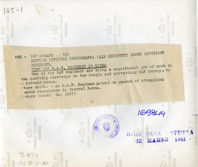 Guerra mondiale 1939-1945 - Partecipazione dei Soldati inglesi - Birmania