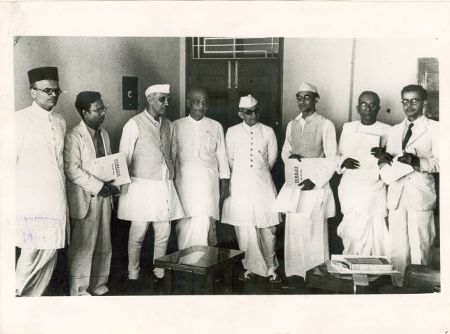Foto dei membri dell'Assemblea costituente svoltasi il 23 agosto 1946 a Bombay e raffigurante tra i vari personaggi Pandit Nehru