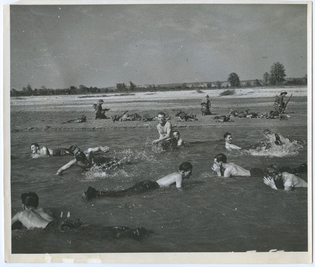 Uomini della R.A.F. si rinfrescano in un fiume in Birmania