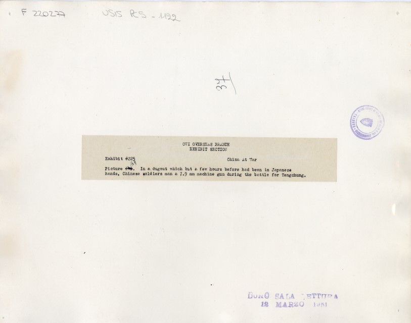 In a dugout which but a few hours before had been in Japanese hands, Chinese soldiers man a 7.9 mm machine gun during the battle for Tengchung