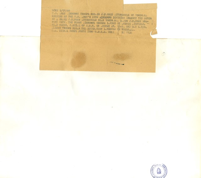 U. S. Army airborne troops repair japanese automobile on Yokohama