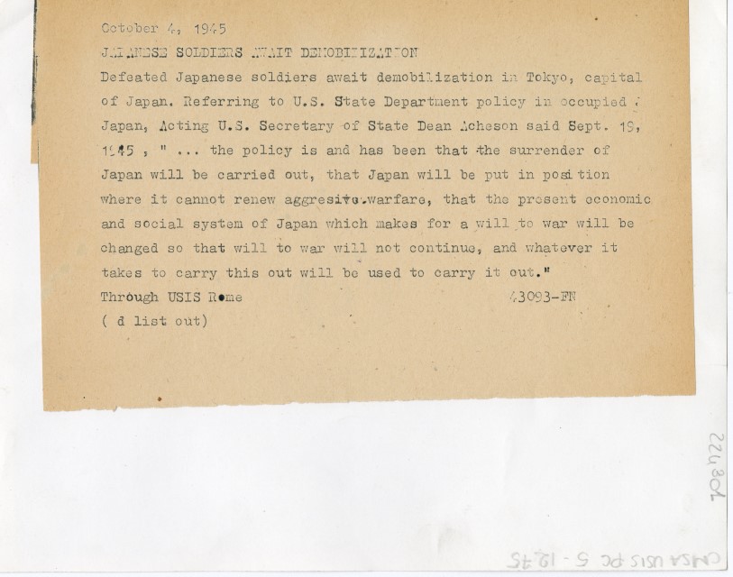 Colecchia Claudia, Peace is here! Fotografie di propaganda degli Americani in Estremo Oriente nel fondo Usis della Fototeca dei Civici Musei di Storia ed Arte, Trieste, 2017 Consulta OPAC