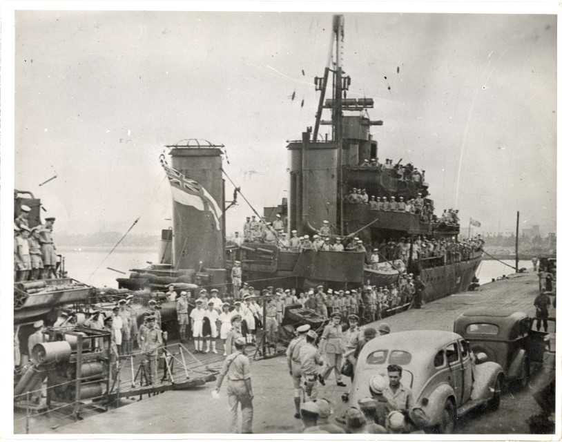 L'Ammiraglio inglese Sir Bruce Fraser approda sulle coste di Yokohama.