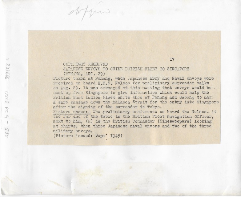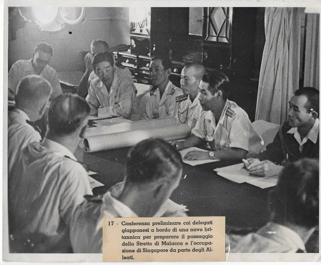 Conferenza preliminare con i delegati giapponesi per il passaggio di Malacca e Singapore agli alleati