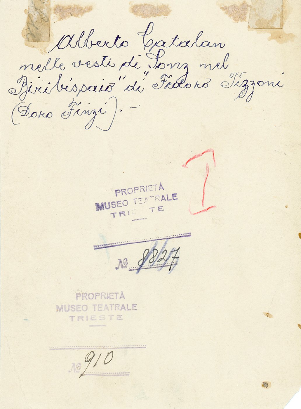 Alberto Catalan nelle vesti di Sonz nel Biribissaio di Fedoro Tizzoni
