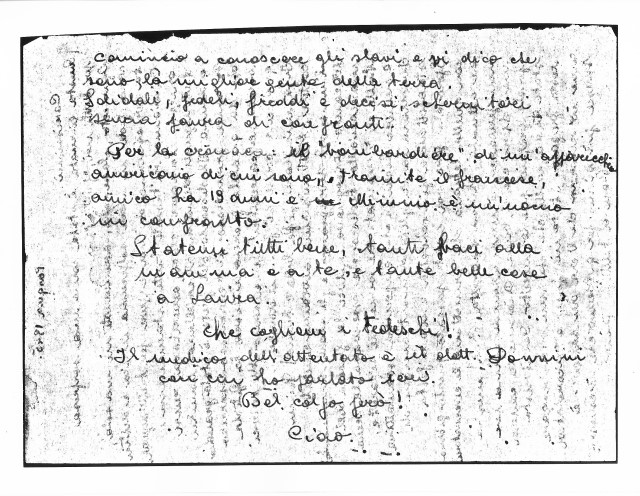 Pino Robusti, lettera ai famigliari, Pasqua 1945