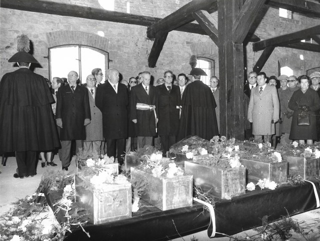 Le autorità rendono omaggio alle ceneri delle vittime depositate nella Sala delle Croci