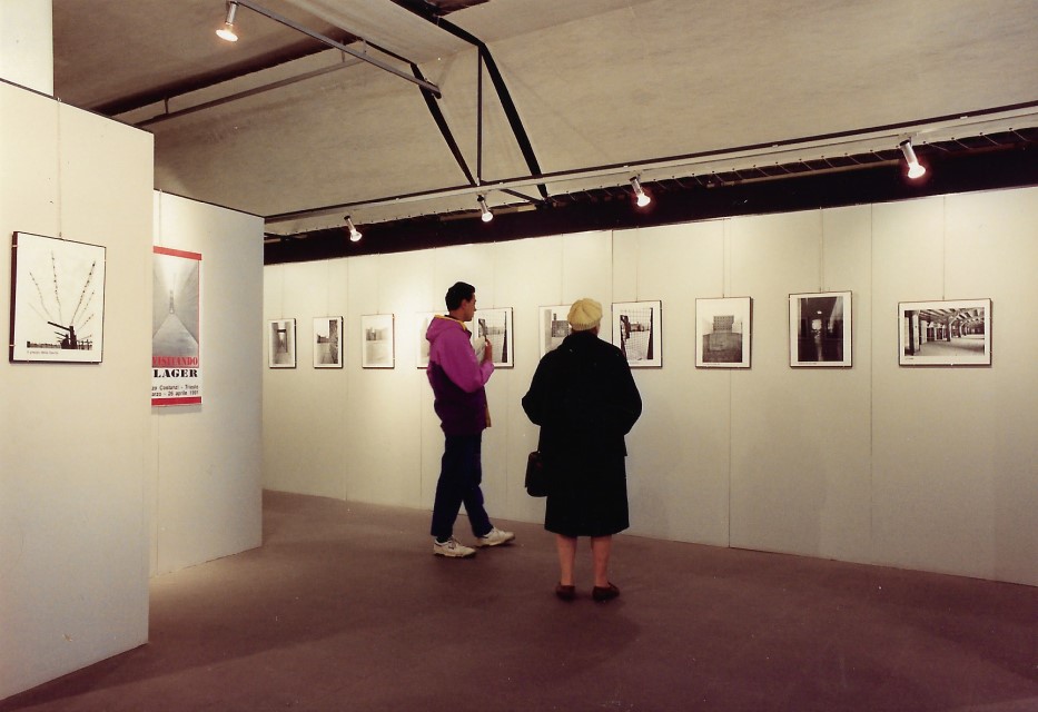 Serie di positivi accompagnati da invito stampato. La mostra "Rivisitando i lager" esponeva, presso la Sala Comunale d'Arte di Palazzo Costanzi, le fotografie dei Lager, in specie Auschwitz, Birkenau e la Risiera di San Sabba, quali si presentano oggi al visitatore. Fotografie dei seguenti artisti: Raymond Depardon, Bruno Fabello, Marcus Hirth, Jurgen Kahlert, Paola Mattioli, Harald Nadolny e Marion Schwanengel.