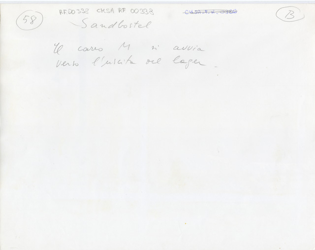 Sandbostel, il carro M si avvia verso l'uscita del lager